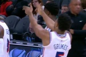 砰砰砰!格萊姆斯3+1殺死比賽 對(duì)著替補(bǔ)席擺出手槍姿勢(shì)慶祝!