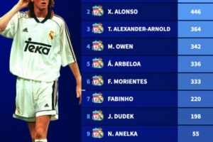 體育資訊11月5日訊 作為歐洲足壇兩大豪門,利物浦和皇馬曾吸引諸多球星效力。德國轉(zhuǎn)會市場盤點了在兩隊均有效力的球員總出場次數(shù)排行,麥克馬納曼為兩隊共出場522次居首,皇馬主帥阿隆索則以446場位居次席。
