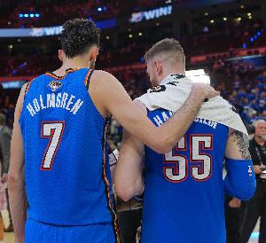 上半場,國王外線優(yōu)勢明顯,比雷霆多命中6記三分,但面對雷霆雙塔辦法不多,內線得分14-36凈負22分。