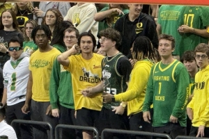 今日俄勒岡大學(xué)以67-63戰(zhàn)勝萊斯大學(xué),取得開(kāi)季兩連勝,小吧來(lái)到現(xiàn)場(chǎng)觀戰(zhàn),看到現(xiàn)場(chǎng)有很多林葳的球迷,一個(gè)外國(guó)人還穿著同曦球衣。