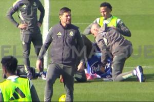 體育資訊11月08日訊 西媒ElDesmarque放出了皇馬訓(xùn)練的視頻,米利唐受傷坐在水箱上,隊(duì)醫(yī)為他纏上繃帶。阿隆索代替他上場完成了團(tuán)隊(duì)訓(xùn)練。