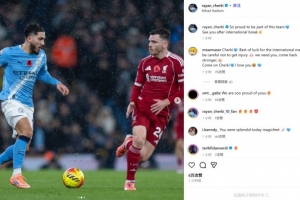 他也在賽后通過社媒曬出自己對(duì)位羅伯遜的比賽照,并配文:“很自豪成為這支球隊(duì)的一員,我們國(guó)家隊(duì)比賽周之后再見!”