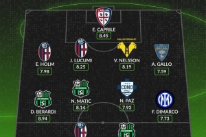 中場:貝拉爾迪(薩索洛,8.94分)、馬蒂奇(薩索洛,8.14分)、帕斯(科莫,7.93分)、迪馬爾科(國際米蘭,7.73分)