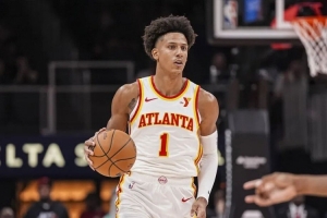 杰倫·約翰遜上季肩傷報銷前,是這個時代的完美策應(yīng)鋒:全能身手、無短板、適配任何隊友,正逼近生涯首次全明星。他會傳球、能接球投、快攻飛天、籃板狂魔且多位置防守,而且沒有明顯到足以給隊友加負(fù)擔(dān)的弱點。如果他有一手?jǐn)[脫中投,再加一手背打,簡直可以去問火箭: