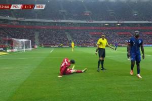 體育資訊11月15日訊 波蘭vs荷蘭第74分鐘,萊萬在爭(zhēng)搶時(shí)受傷,直接坐下了,但暫時(shí)沒有換人。