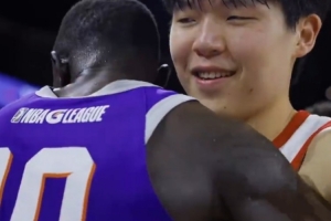 賽后,兩人相擁致意,楊瀚森還和馬盧阿奇簡(jiǎn)單耳語(yǔ)。