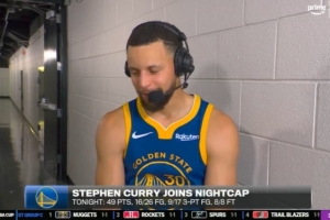 體育資訊11月15日訊 NBA杯,勇士109-108擊敗馬刺,賽后庫(kù)里連線接受采訪。
