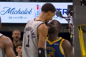 文班亞馬:“最好的方式是在球場上做出回應,顯然,在行為上絕不能任人欺凌,但對我來說,我知道這才是最讓他們難受的,當我蓋他之后,他就完全安靜了,我很清楚,這才是最好的回應方式。”