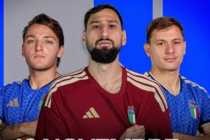 意大利官方社媒曬出為此役制作的海報(bào),多納魯馬、巴雷拉、雷特吉出鏡。