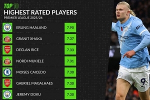 體育資訊11月19日訊 截至目前本賽季英超進行了11輪比賽,WhoScored列球員評分榜,哈蘭德7.90居首,扎卡7.37第二。