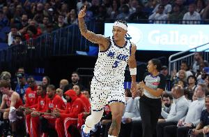 此役魔術(shù)前鋒班凱羅出場36分鐘21投7中,三分4中1、罰球11中9拿到全場最高24分外加10籃板1助攻2蓋帽,正負值-2。