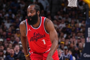 全場比賽,快船球星哈登出戰(zhàn)35分鐘,26中17,三分16中10得到55分3板7助攻1搶斷。