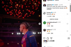 本場比賽也是巴薩回歸諾坎普球場首戰(zhàn),迎來傷愈復(fù)出的拉菲尼亞在社媒曬照寫道:“回家的感覺真棒!球隊取得關(guān)鍵三分”