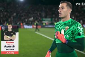 體育資訊11月24日訊 皇馬在本輪西甲對(duì)陣埃爾切,埃爾切門將佩尼亞在賽后被官方評(píng)為全場最佳球員。