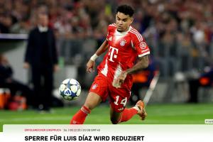 拜仁官方:迪亞斯禁賽上訴成功,歐冠禁賽由3場縮短至2場