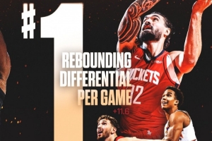 火箭目前場(chǎng)均凈勝對(duì)手11.6個(gè)籃板,聯(lián)盟第一。場(chǎng)均進(jìn)攻籃板數(shù)為16.2個(gè)。
