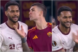 體育資訊11月28日訊 據(jù)《羅馬體育報(bào)》報(bào)道,羅馬后衛(wèi)曼奇尼在本輪歐聯(lián)杯比賽中用飛吻挑釁對(duì)手。