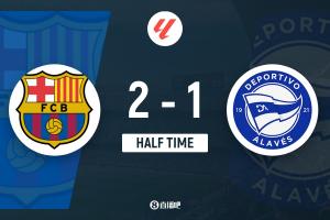 體育資訊11月30日訊 北京時間11月29日23:15,西甲第14輪巴薩迎戰(zhàn)阿拉維斯的比賽在諾坎普球場進(jìn)行,上半場伊巴涅斯開場閃擊反客為主,亞馬爾抽射扳平比分,加西亞獻(xiàn)神撲,拉菲尼亞助攻奧爾莫反超比分,亞馬爾中柱,半場結(jié)束,巴薩2-1阿拉維斯。
