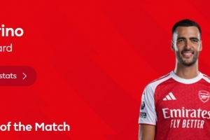 本場(chǎng)比賽梅里諾傳射建功,賽后當(dāng)選英超官方球迷票選全場(chǎng)最佳球員。
