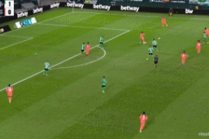 兩分鐘后巴德吉助攻,費蘭凌空側鉤破門完成雙響,巴薩反超比分,2-1貝蒂斯!