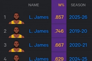 本季詹姆斯出戰(zhàn)時勝率85.7% 暫為湖人生涯單賽季新高&超奪冠賽季