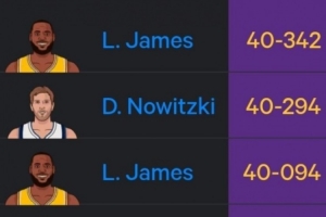 至此,詹姆斯成為了史上砍下29+年紀(jì)最大的球員(40歲342天),力壓諾維茨基(40歲294天)。且前十榜單中9次是詹姆斯。