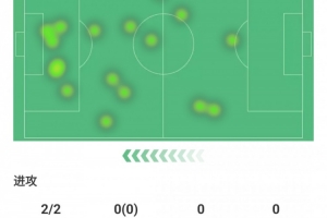 射門2次射正2次,丟失球權4次,預期進球0.38球