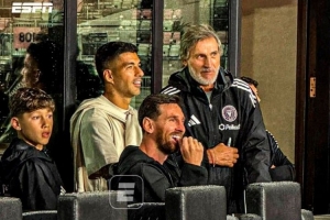 梅西組織的青少年錦標(biāo)賽“梅西杯”在邁阿密開(kāi)幕,梅西與蘇亞雷斯來(lái)到現(xiàn)場(chǎng),觀看巴薩對(duì)陣河床的青訓(xùn)梯隊(duì)比賽。