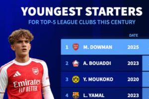 本世紀歐洲五大聯(lián)賽俱樂部最年輕首發(fā)