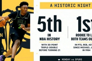 33+10+10+4帽!奎因昨日得分籃板助攻蓋帽領跑兩隊 喬丹后首新秀