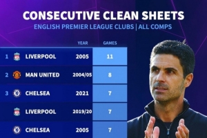 英超球隊各項賽事最長零封榜:(*當(dāng)前仍未終結(jié))