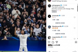 本場(chǎng)比賽羅德里戈率先破門,打破個(gè)人連續(xù)32場(chǎng)進(jìn)球荒,他在社媒曬出本場(chǎng)照片,配文寫道:“還要繼續(xù)努力,我們會(huì)改變現(xiàn)狀,Hala Madrid! ????”