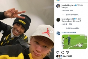 體育資訊12月13日訊 哈蘭德更新社媒,曬出自己和貝林厄姆的合照。貝林厄姆則評(píng)論回復(fù):老鐵。