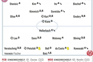 拜仁vs美因茨踢球者評(píng)分:奧利塞、基米希、卡爾2.5分隊(duì)內(nèi)最高