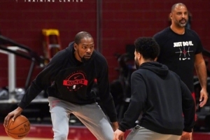 將開啟6連客&戰(zhàn)掘湖船 火箭官方曬訓練照:杜蘭特專注 申京微笑