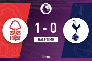 半場-奧多伊破門格雷送禮桑加雷中柱 諾丁漢森林1-0領(lǐng)先熱刺
