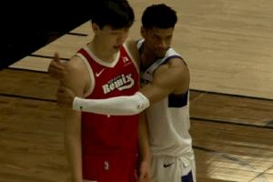 GIF-考德威爾愛的抱抱楊瀚森 瀚森害羞的笑了