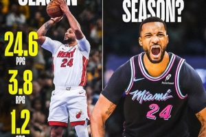 鮑威爾本賽季場(chǎng)均24.6分3.8籃板1.2搶斷,三分命中率43.6%;目前熱火14勝12負(fù),排名東部第八。