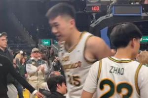 中國球員、舊金山大學(xué)后衛(wèi)趙維倫最后時(shí)刻獲得出場機(jī)會(huì),上場1分鐘沒有運(yùn)動(dòng)戰(zhàn)出手,罰球2中1,得到1分。