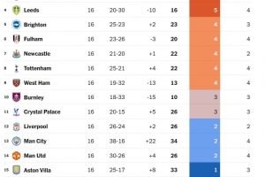 TA盤點了英超烏龍球另類積分榜,回顧了上賽季以來各隊產(chǎn)生的烏龍球情況(包括對手打進的烏龍球)。因此,桑德蘭、伯恩利和利茲聯(lián)的數(shù)據(jù)來自上賽季的英冠聯(lián)賽。
