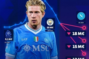 德轉(zhuǎn)預(yù)熱德布勞內(nèi)最新身價(jià)(目前2000萬歐)