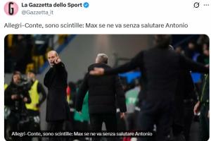 比賽結束后,阿萊格里徑直走回更衣室,未與孔蒂握手致意??椎賱t留在場上向對手致意,與阿萊格里的長期助手馬爾科·蘭杜奇以及米蘭球員們握了手。