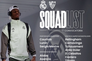 體育資訊12月20日訊 北京時(shí)間12月21日凌晨4:00,2025-26賽季西甲聯(lián)賽第17輪,皇馬將在伯納烏球場迎戰(zhàn)塞維利亞。賽前,皇馬官方公布球隊(duì)本場大名單,巴爾韋德缺席,阿拉巴、門迪和卡馬文加在列。