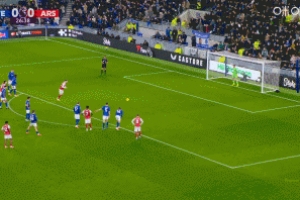 約克雷斯點(diǎn)球一蹴而就,阿森納1-0領(lǐng)先埃弗頓!