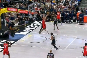 蹦得真高!謝潑德沖刺到中線附近拉桿三分壓哨造成埃利斯犯規(guī)