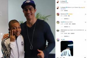 賽后,姆巴佩更新社媒,發(fā)布了本場(chǎng)比賽自己進(jìn)球后模仿C羅“SIUUU”慶祝的圖片和自己少年時(shí)與C羅的合影,并配文道:“相信你的夢(mèng)想。致敬王者????”并@了C羅的賬號(hào)。