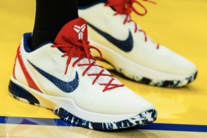 熱身階段,庫里上腳科比6代美國隊PE,美國國旗元素融入球鞋,清爽養(yǎng)眼。