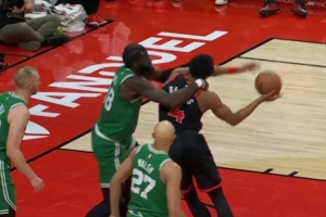 GIF-巴恩斯被科塔拉下隨手一拋命中,主裁判經(jīng)回放判定一級(jí)惡意犯規(guī)