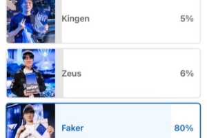2.7萬(wàn)人的投票中,DRX上單Kingen僅占5%,F(xiàn)aker高達(dá)80%
