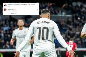 賽后姆巴佩曬出自己進球后模仿C羅“Siu”慶祝的照片,得到了C羅本人的回復。